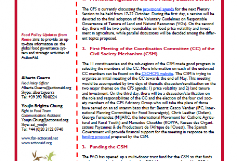 Food Policy Updates from Rome aims to provide an up-to-date information on the global food governance system and strategic activities of ActionAid.
