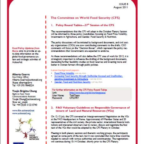 Food Policy Update from Rome - Issue 8, Aug 2011